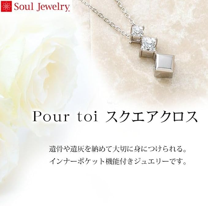 [Soul Jewelry] 【メモリアルアートの大野屋】ソウルジュエリー 遺骨 ペンダント 収骨キット付属 手元供養 遺骨入れ 遺骨カプセル メモリアル 人気 おしゃれ 「遺骨ペンダント プルトワ スクエアクロス シルバー」