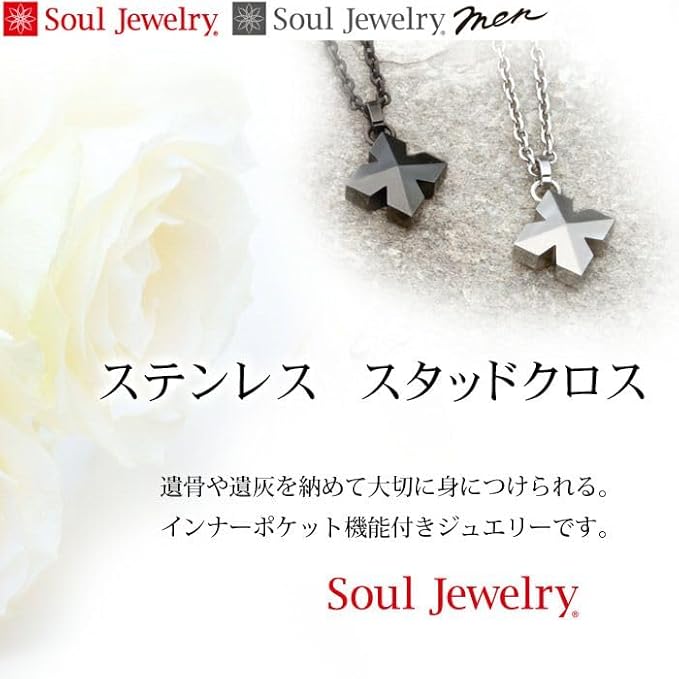 [Soul Jewelry] 【メモリアルアートの大野屋】ソウルジュエリー 遺骨 ペンダント 収骨キット付属 手元供養 遺骨入れ 遺骨カプセル メモリアル 人気 おしゃれ 「遺骨ペンダント ステンレス スタッドクロス プレーン メンズ」