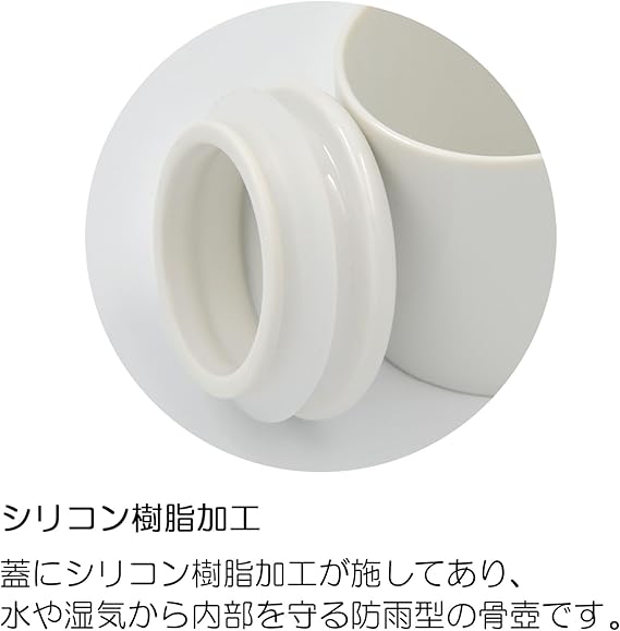 シリコン樹脂加工の防雨型骨壺:蓋にはシリコン樹脂加工が施されており、高い密閉性を実現しています。水や湿気の侵入を防ぐ防雨仕様で、大切なご遺骨をしっかりと保護します。