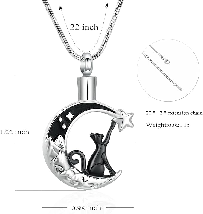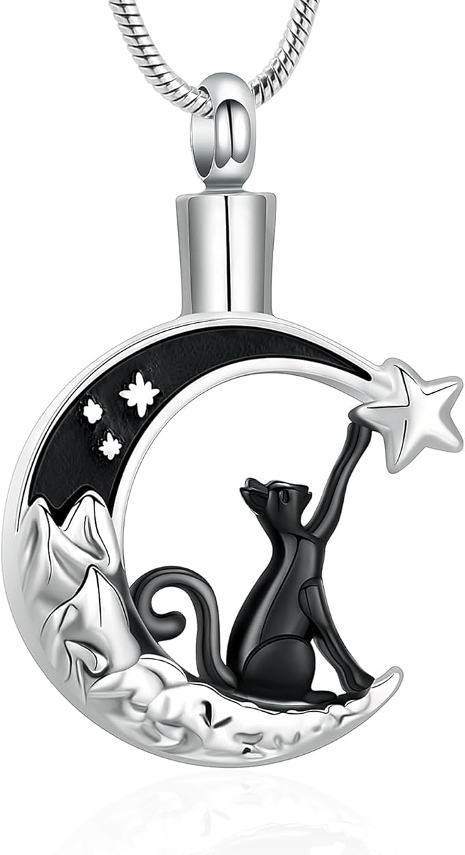 [QGJNSGC] 遺骨 ペンダント ストーンハート 手元供養 納骨セット付 金属アレルギー対応 安心 遺骨カプセル 遺骨入れ 遺骨 ネックレス 遺骨 アクセサリー ステンレス製 メモリアルペンダント月の猫 a