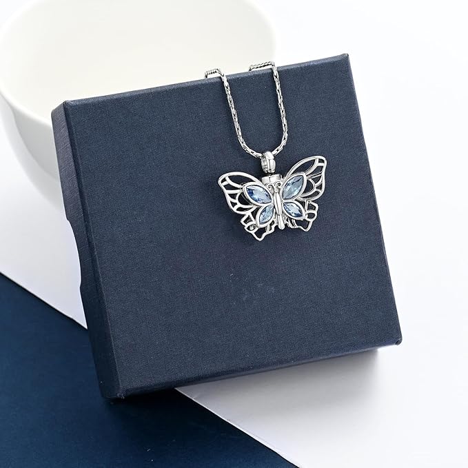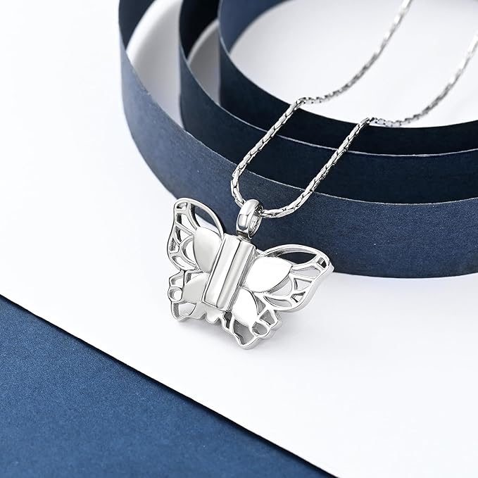 [QGJNSGC] 遺灰の火葬ジュエリーネックレスメモリアルロケットペンダント瓶の記念品のネックレスのための蝶骨壷のネックレス