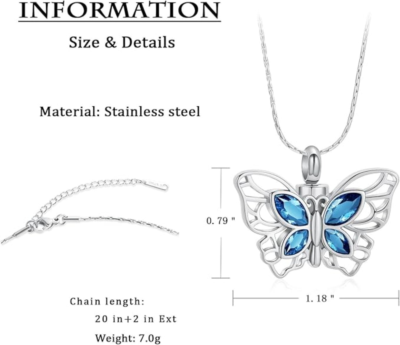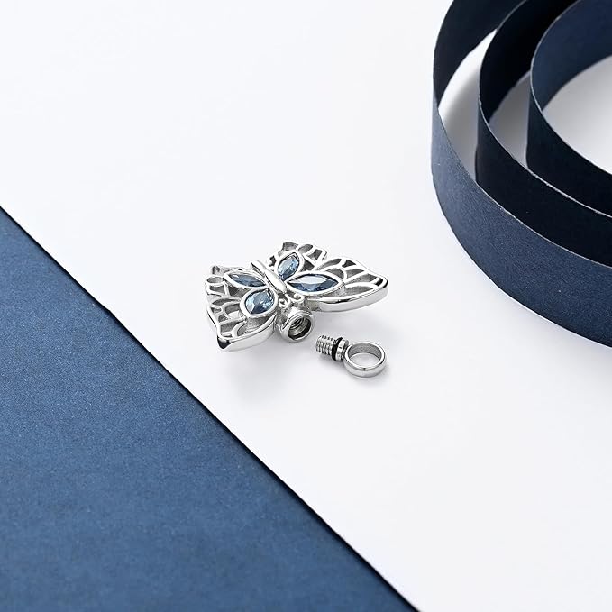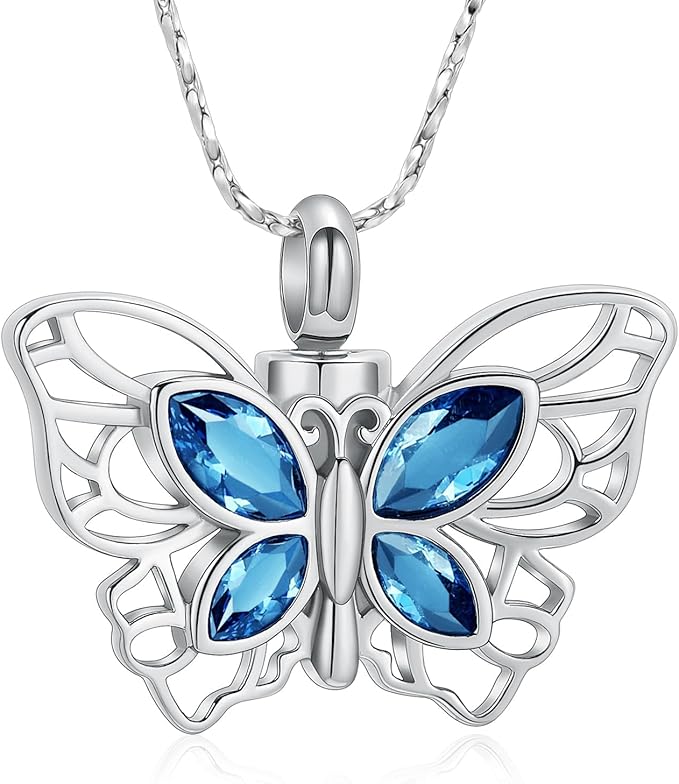 [QGJNSGC] 遺灰の火葬ジュエリーネックレスメモリアルロケットペンダント瓶の記念品のネックレスのための蝶骨壷のネックレス a