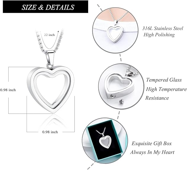 [QGJNSGC] ガラス遺骨 ペンダント ストーンハート 手元供養 納骨セット付 金属アレルギー対応 安心 遺骨カプセル 遺骨入れ 遺骨 ネックレス 遺骨 アクセサリー ステンレス製 メモリアルペンダント a
