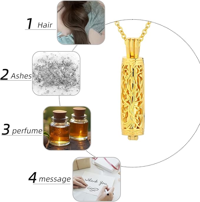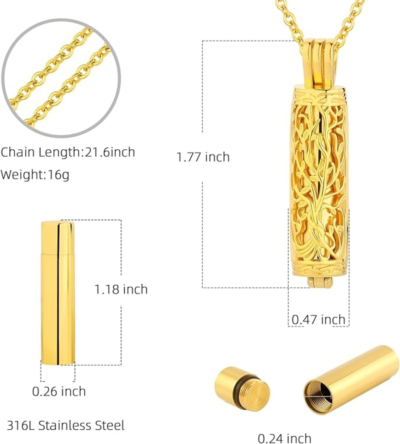 [InfuMemo] シリンダー火葬の宝石類の生命の樹木の女性のための灰のネックレス男性の小瓶の骨壷のネックレス灰のための愛する人の記念の宝石類 小型記念品の骨壷の記念の灰の宝石類が付いている記念の宝石類