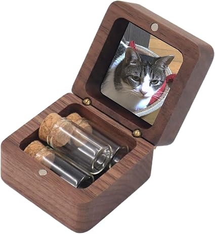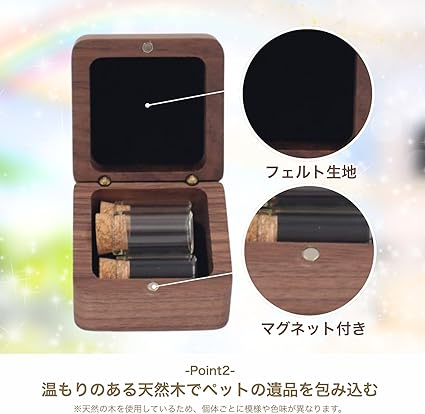 HALSUN ペットメモリアルケース 遺毛 遺骨入れ 骨壷 メモリアルボックス 仏具 ボトル3本付き (ウォルナット) a