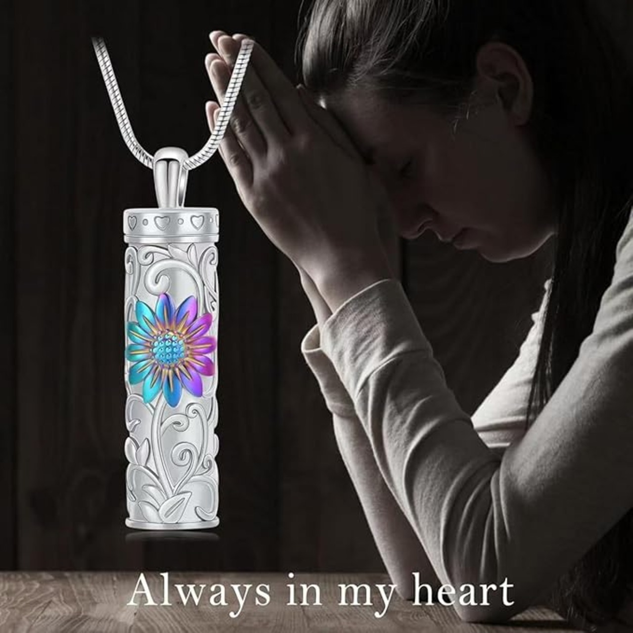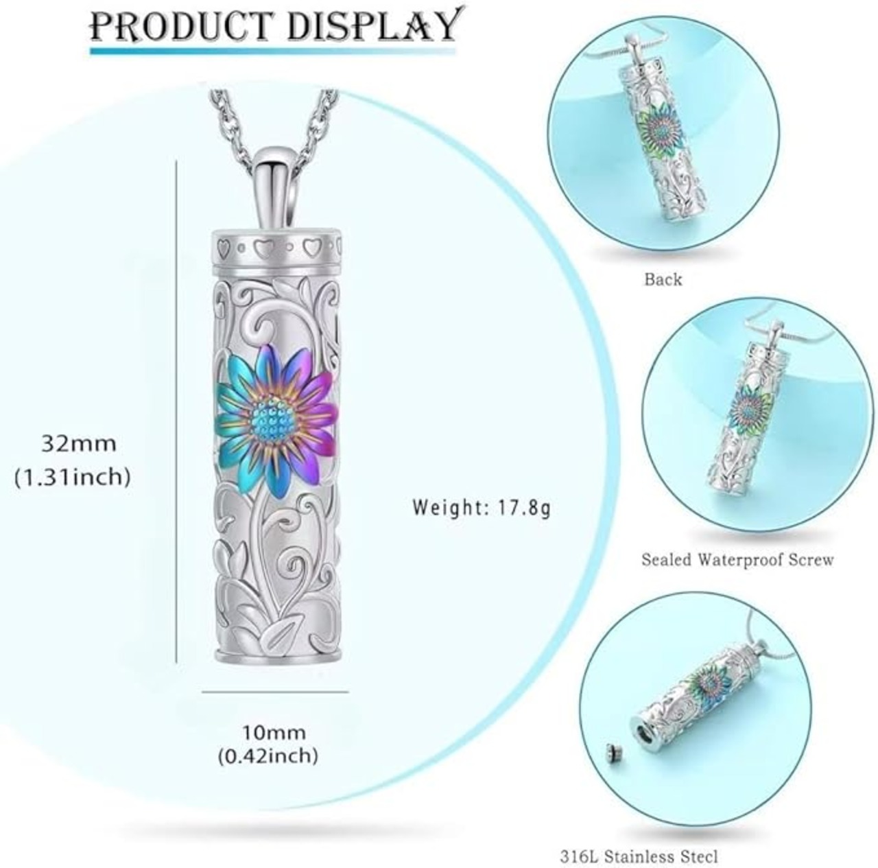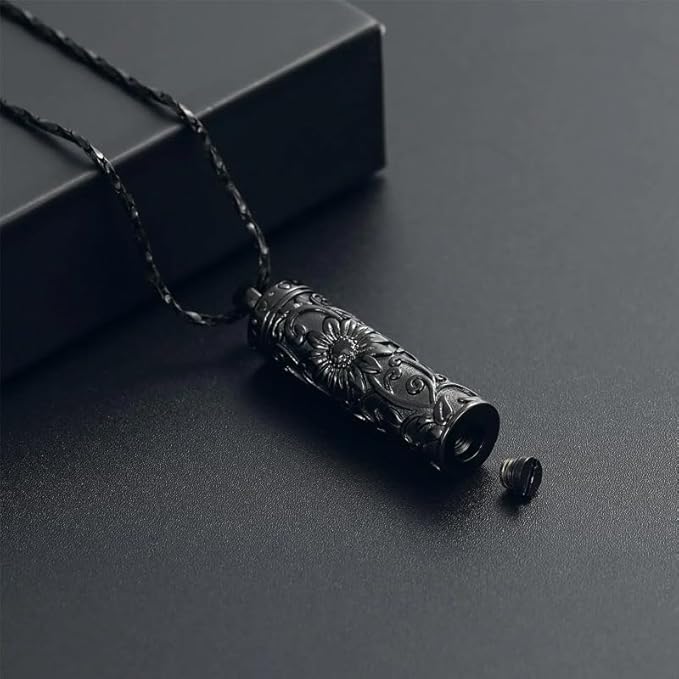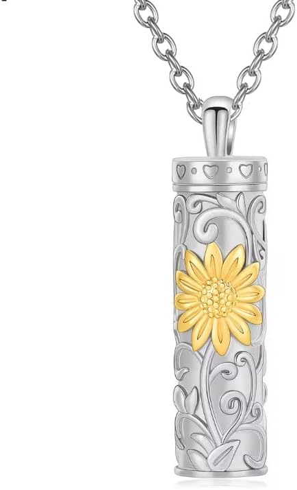 [Rockyu] 遺骨ペンダント レディース 手元供養 ネックレス 向日葵 ステンレス 円柱型 ペンダント 香水入れ カプセル型 防水仕様 お守り 遺骨ネックレス 記念アクセサリー クリスマスギフト a