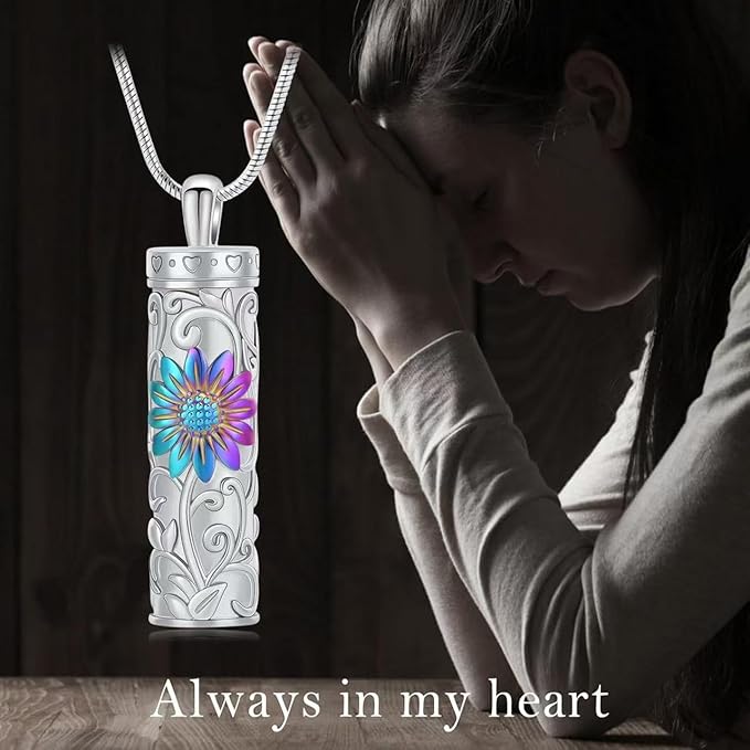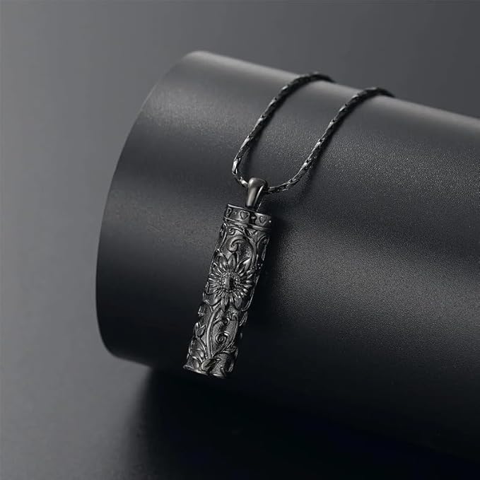 [Rockyu] 遺骨ペンダント レディース 手元供養 ネックレス 向日葵 ステンレス 円柱型 ペンダント 香水入れ カプセル型 防水仕様 お守り 遺骨ネックレス 記念アクセサリー クリスマスギフト