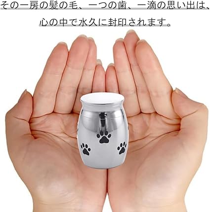 【商品規格】サイズ:4x3cm、セット内容:1個入り。近年流行の手元供養用として最適な小さな骨壺です、骨壺の本体には可愛らしい肉球のデザインが施されており、ペットに対する愛情を感じさせます。