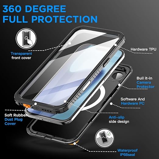 AICase iPhone 17 AIR ケース 防水クリア MagSafe対応 防水/防雪/防塵/耐衝撃 IP68認証 360°フルボディ保護 完全密閉型 水中カバー iPhone 17 AIR 6.7インチ用 a