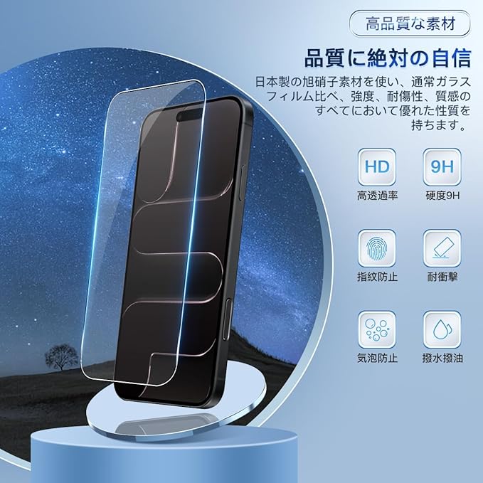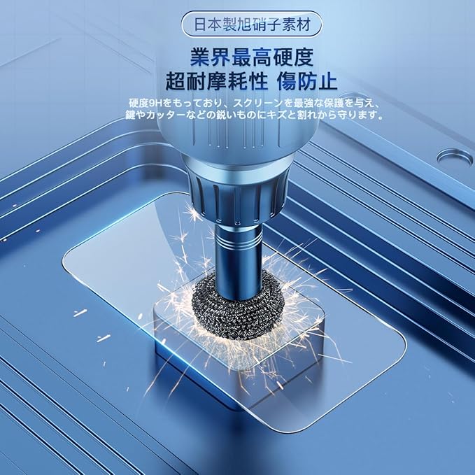 ★【業界最高硬度・耐衝撃性!】 日本製旭硝子素材を採用し、硬度 9H の超強化ガラスにハードコーティング技術を施しています。1 メートルの高さから 1