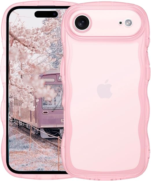 AVETUL iPhone 17 Air ケース クリア ウェーブ アイフォン17エアケース 韓国 うねうね おしゃれ 黄ばみなし かわいい ソフトTPU 滑り止め 薄型 軽量 iPhone 17 Air スマホケース ワイヤレス充電対応 ストラップホール付き アイフォン 17 エア ウェーブ カバー (クリア/ピンク) a