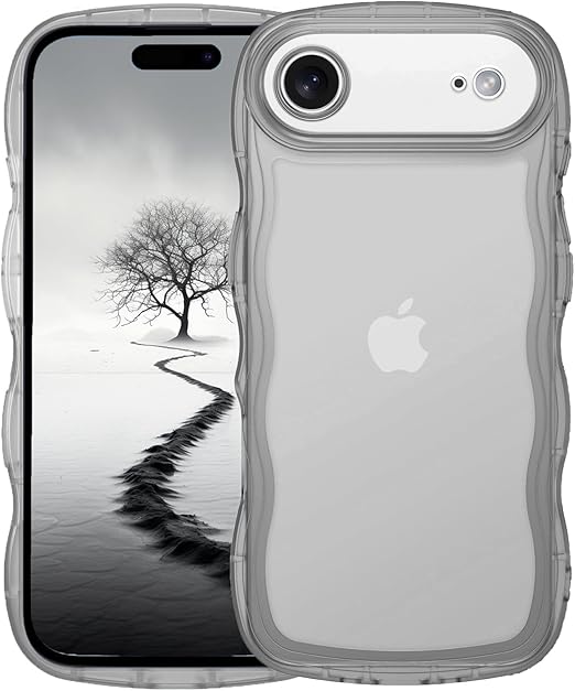 AVETUL iPhone 17 Air ケース クリア ウェーブ アイフォン17エアケース 韓国 うねうね おしゃれ 黄ばみなし かわいい ソフトTPU 滑り止め 薄型 軽量 iPhone 17 Air スマホケース ワイヤレス充電対応 ストラップホール付き アイフォン 17 エア ウェーブ カバー (クリア/ブラック) a