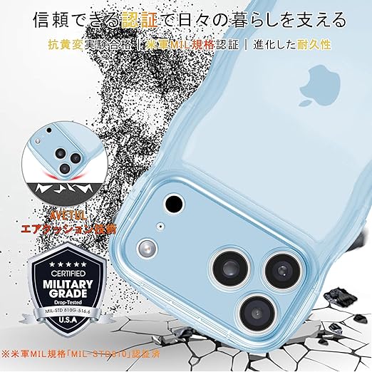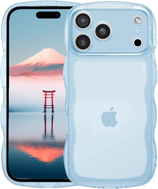 AVETUL iPhone 17 Pro Max ケース クリア ウェーブ アイフォン17プロマックスケース 韓国 うねうね おしゃれ 黄ばみなし かわいい ソフトTPU 滑り止め 薄型 軽量 iPhone 17 Pro Max スマホケース ワイヤレス充電対応 ストラップホール付き アイフォン 17 プロマックス ウェーブ カバー (クリア/ブルー) a