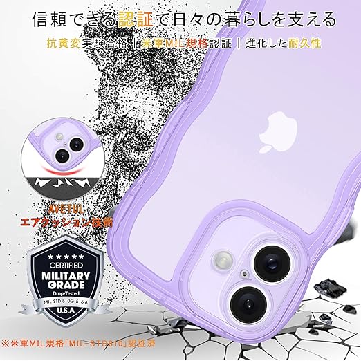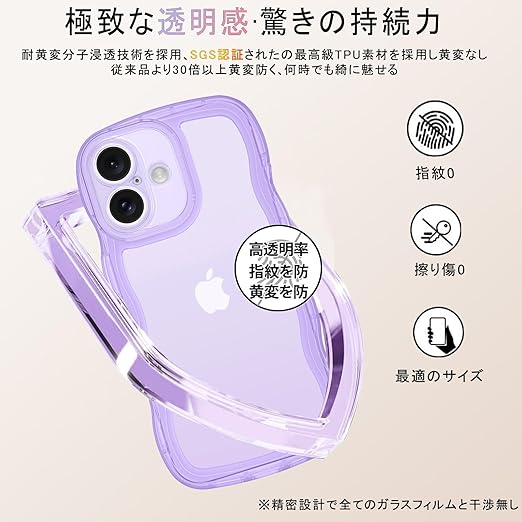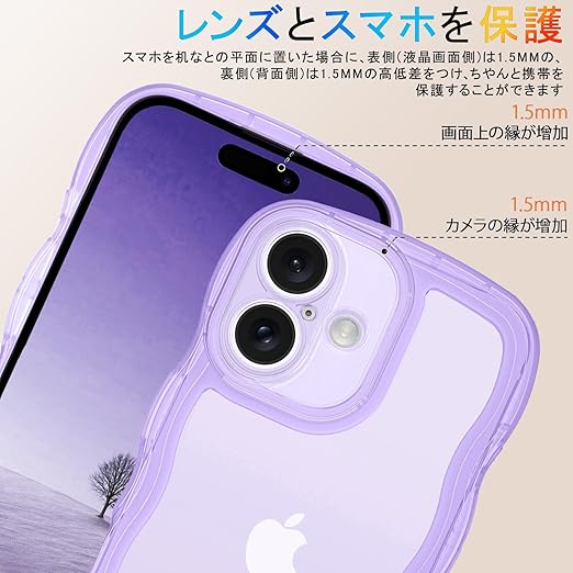 AVETUL iPhone 17 ケース クリア ウェーブ アイフォン17ケース 韓国 うねうね おしゃれ 黄ばみなし かわいい ソフトTPU 滑り止め 薄型 軽量 iPhone 17 スマホケース ワイヤレス充電対応 ストラップホール付き アイフォン 17 ウェーブ カバー (クリア/パープル) a