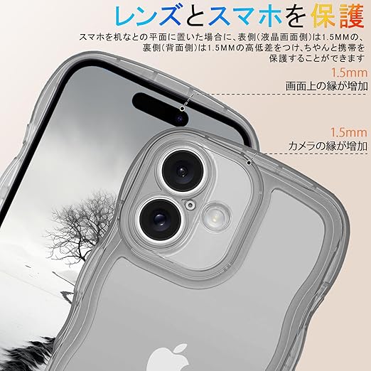 【かわいい波枠】これはiPhone 17 ケース用のクリアユニークな境界デザインで。かわいい波状の