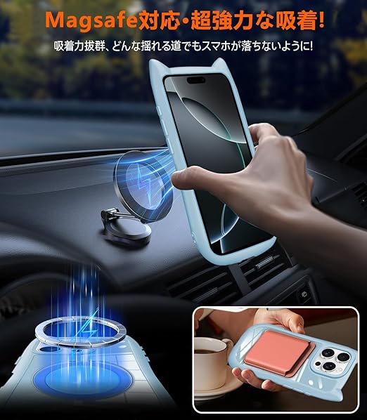 【Magsafeなら強力な磁力 】iPhone 17 Pro Max 用ケースの内部に 配列永久磁石を内蔵したことで、吸着力を高めて、安定感をアップしてエネ損失なしの快速ワイヤレス充電できる。MagSafe車載ホルダーでの使用時もとても安心感溢れ、様々なMagSafe用のアクセサリーと相性バッチリ!