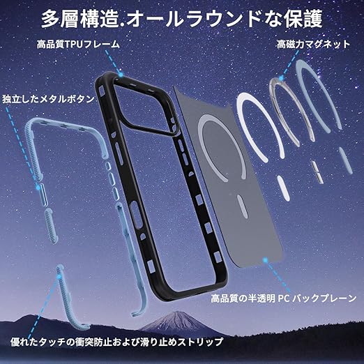 【対応機種】 iPhone 17 Pro Max(6.9インチ)用 MagSafe ケース。ご希望の商品、カラー、対応機種を十分ご確認の上、ご注文頂きますようお願い申し上げます。これはcoiwantungの新製品です、MagSafe機能搭載。ソフト TPU、半透明 PC バックパネル、したメタルボタン、滑り止め衝突防止ストリップで構成されるフォーインワン構造設計。