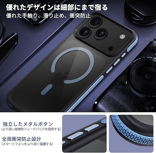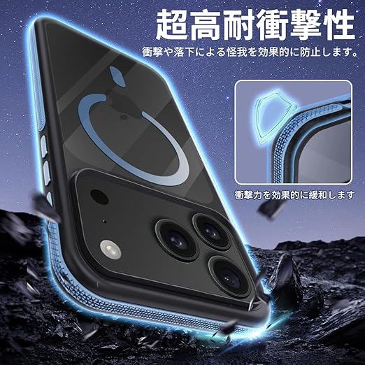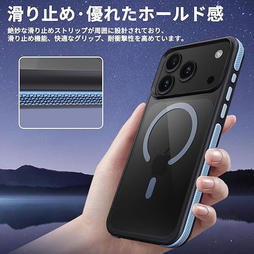 coiwantung 対応 iPhone 17 Pro Max MagSafe ケース 耐衝撃 滑り止め アイフォン 17 Pro Max スマホケース 【新しい衝突防止ストリップ設計】[フォーインワン構造設計]米軍MIL規格 カバー 軽量 ワイヤレス充電対応 半透明 滑り止めエッジ 薄型 落下保護 (ブルー) a
