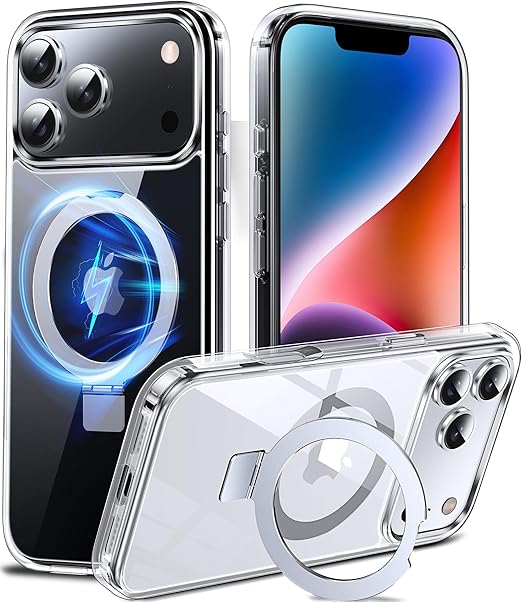 DASFOND iPhone 17 Pro Max 用 ケース [MagSafe 対応] 2025 アップグレード[オールインワン] ワイヤレス充電 米軍MIL規格の落下防止 耐衝撃 マグネットスマホケース インビジブルリングキックスタンド 透明スリムベルベティタッチ 磁気ケース カバー アイフォン17プロマックス 6.9 インチ クリア a