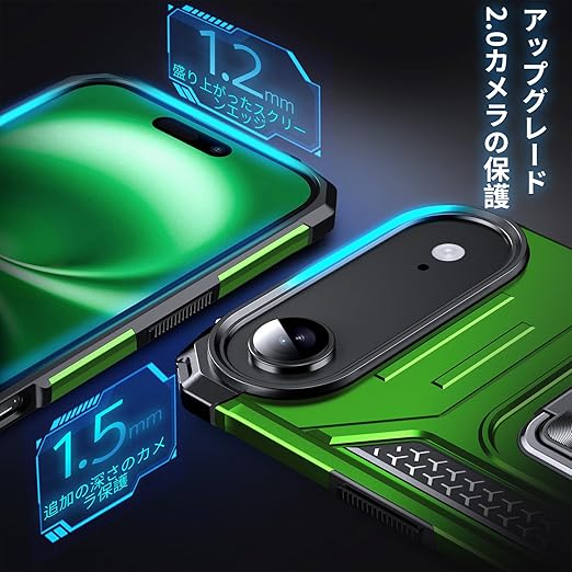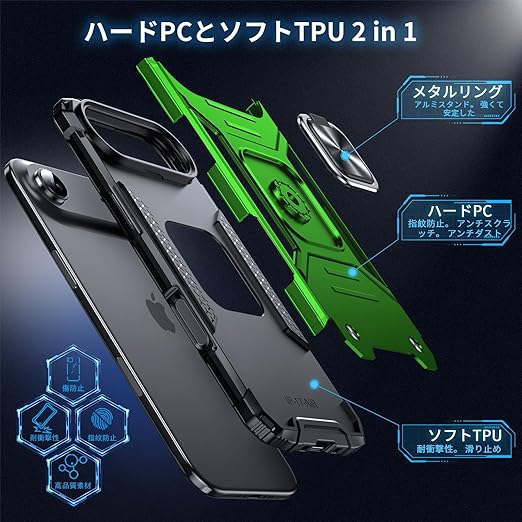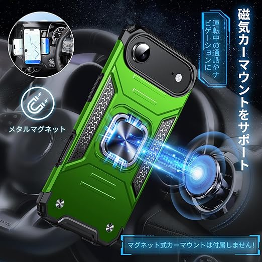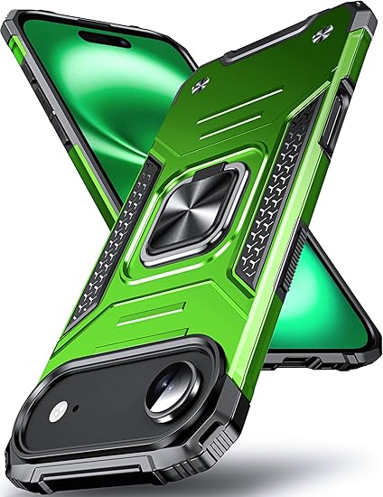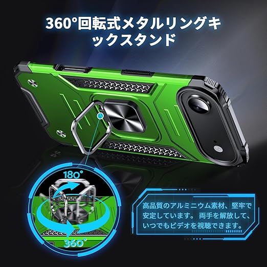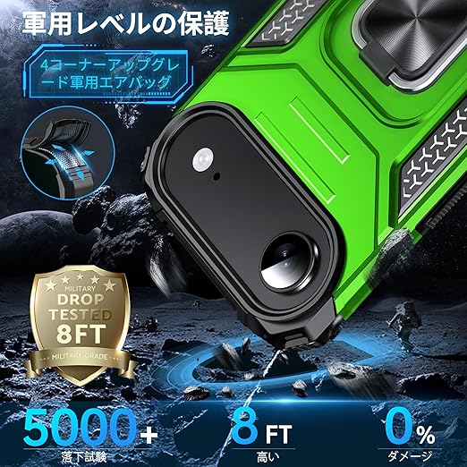 DASFOND iPhone 17 Air 用 ケース 360度回転メタルリングキックスタンド付き 米軍MIL 耐衝撃 強化PCハードバック 傷つけ防止 スマホケース アイフォン17エア カバー 6.6 インチ グリーン a