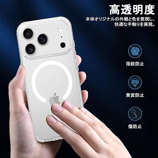 DEVEPLUS iPhone 17 Pro Max 専用 ケース 【米軍MIL規格・マグネット搭載】 ワイヤレス充電 クリア 衝撃吸収 黄変防止 ストラップホール付き 滑り止め 落下防止 耐久性 iPhone 17 Pro Max 用 カバー(透明) a