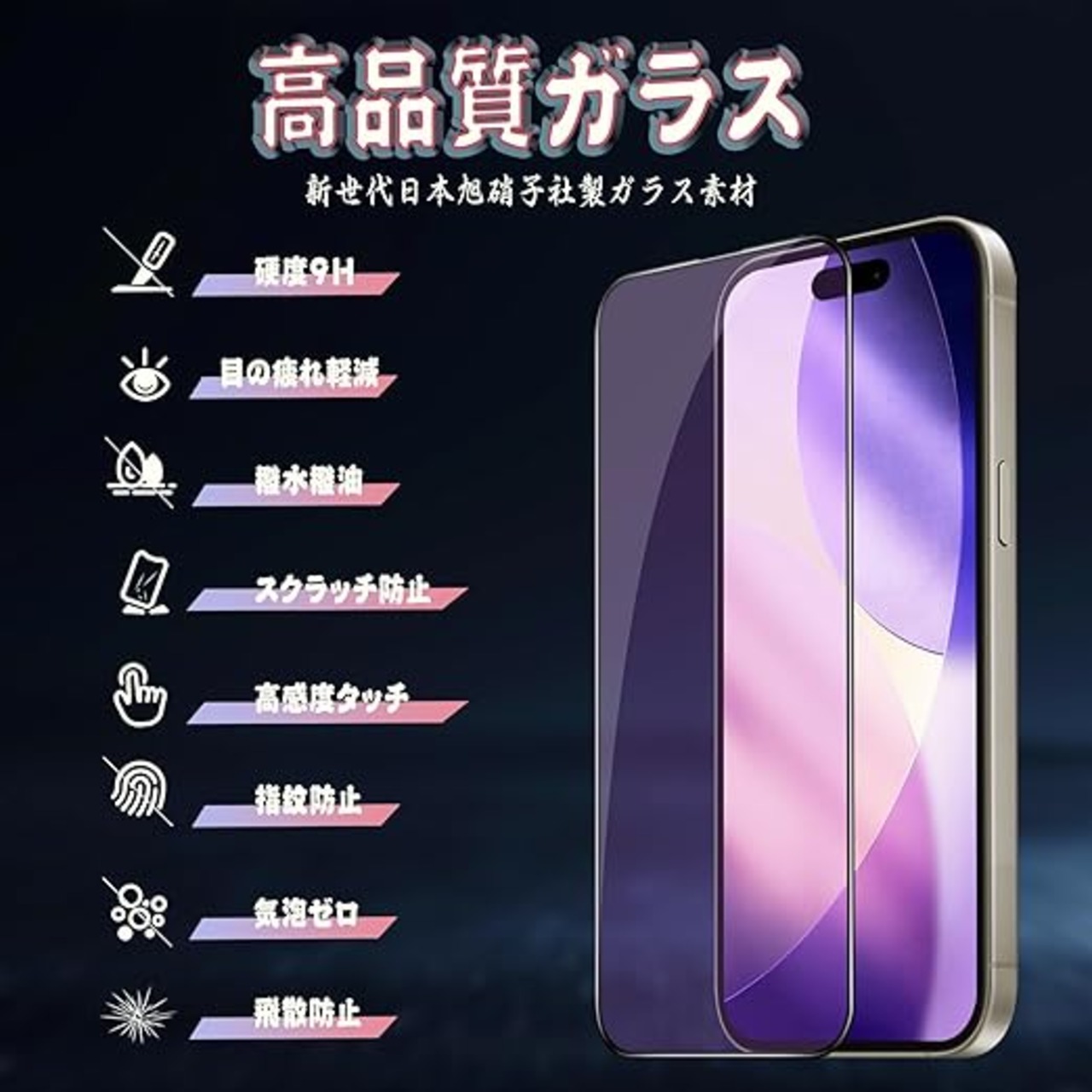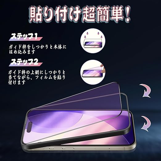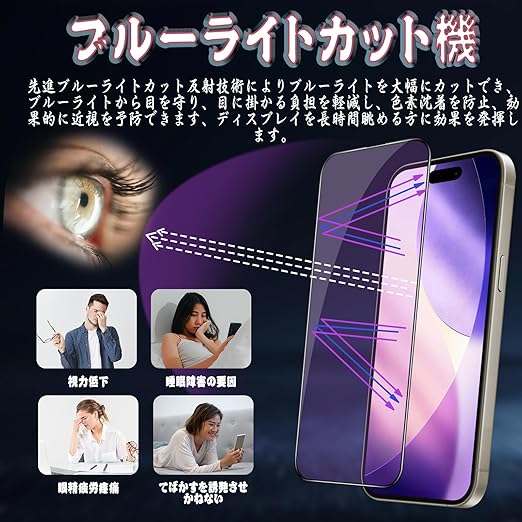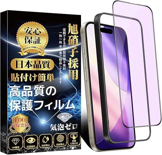 対応 iPhone17ProMax ガラスフィルム ブルーライトカット iPhone 17 Pro Max 用 保護フィルム 目の疲れ軽減 【ガイド枠付き・1枚入り】 旭硝子素材製 硬度9H 貼り付け簡単 自動吸着 撥水撥油 気泡・指紋・飛散防止 アイフォン17ProMax 対応 保護フィルム a