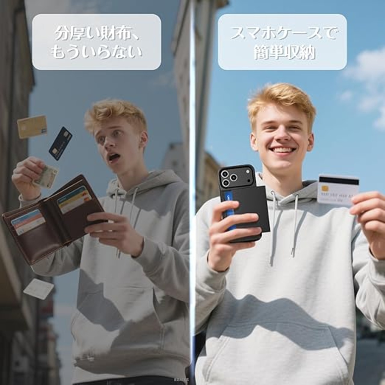【全密閉式隠しカードホルダー設計】iPhone 17 Pro Max保護カバーは2枚のカードを安全に保管することができる。財布を持ち出す必要がなく、身分証明書、クレジットカード、現金を簡単に持ち運ぶことができます。全閉鎖設計はカードの安全を確保する。