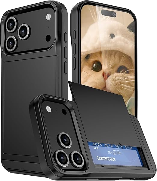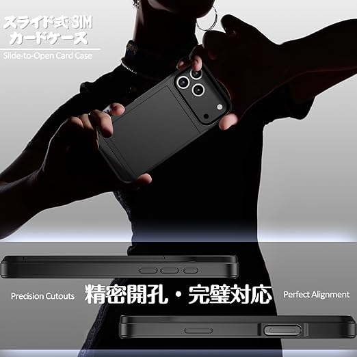 iPhone 17 Pro Max 用ケース カード収納 背面 全密閉式隠しカードホルダー設計 米軍MIL規格 耐衝撃最強 アイフォン17 Pro Max 用ケース カード背面収納 全面保護 指紋防止 滑り止め 落下防止 (黒) a