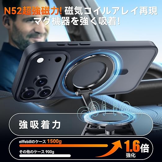 【超強力磁気吸引、安定充電】iPhone 17 Pro ケースには強力な磁石が内蔵されており、どんな回転でもPhone 17 Pro は元の回転状態を維持できます。