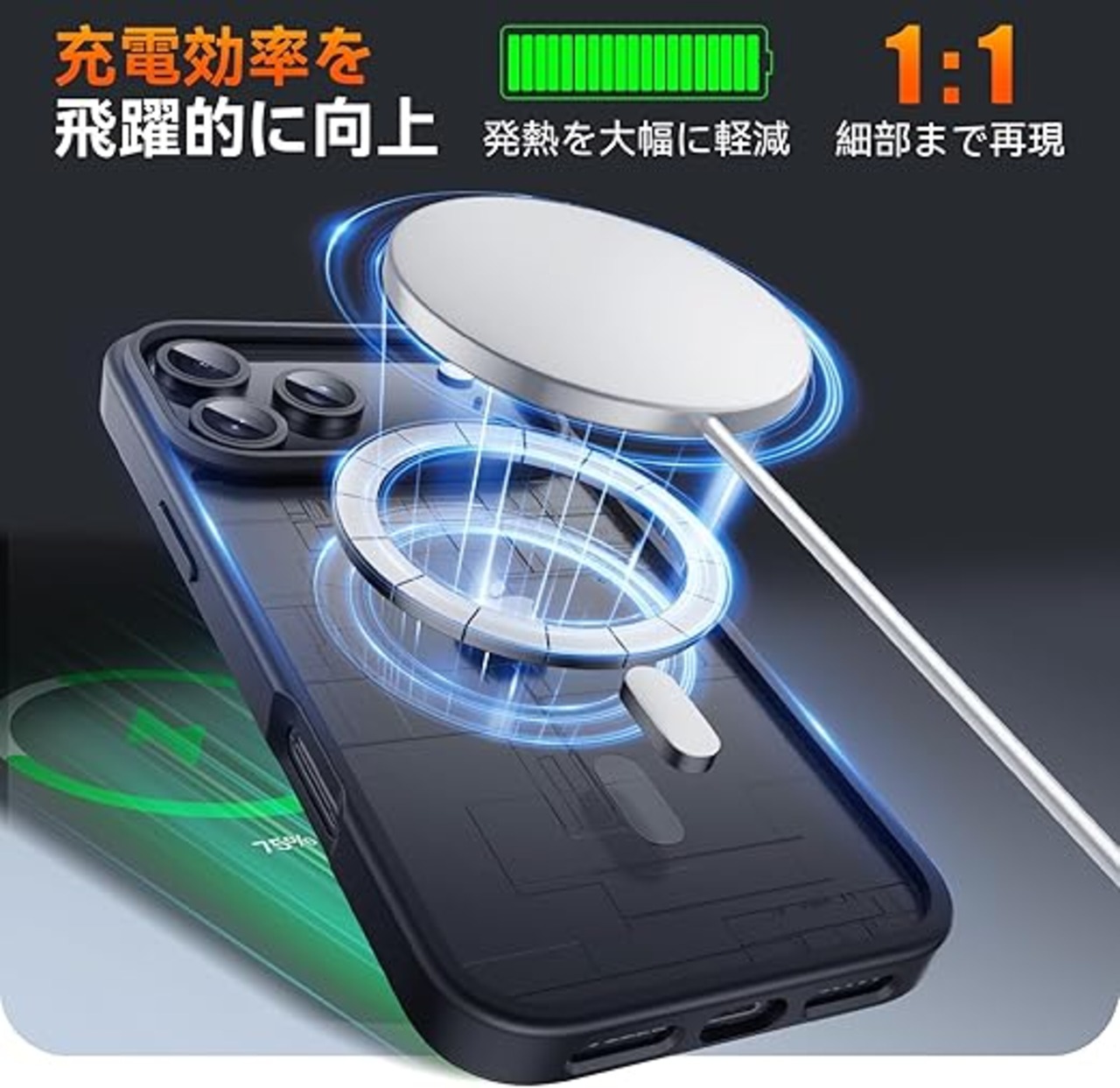 【急速充電体験】充電中にケースを外すことなく、Eiffebill 17 Pro ケースは完璧配列のマグネットでワイヤレス充電を従来より速く、より楽にさせ、魔法の接続と