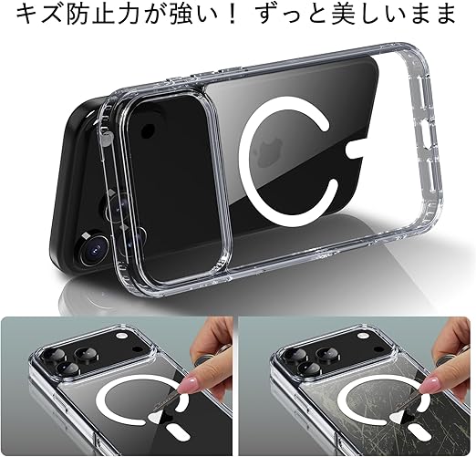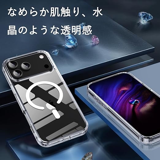 iPhone 17 Pro Max ケース クリア 耐衝撃 MagSafe対応 マグネット搭載 PC 傷防止 滑り止め 軽量 薄型 米軍MIL規格 ワイヤレス充電対応 スマホカバー EUMADOVE (クリア傷防止, iPhone 17 Pro Max) a