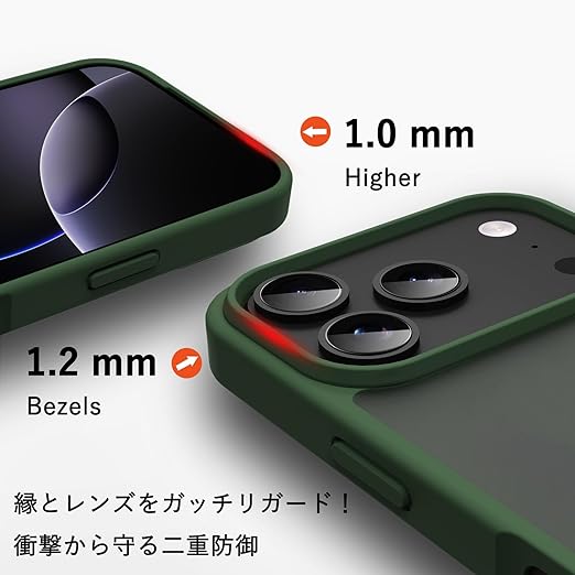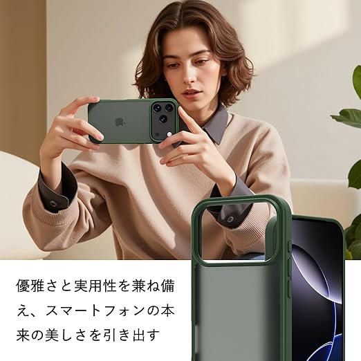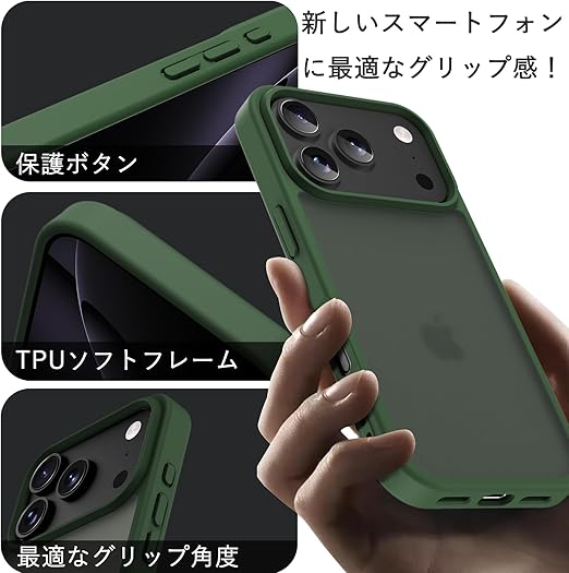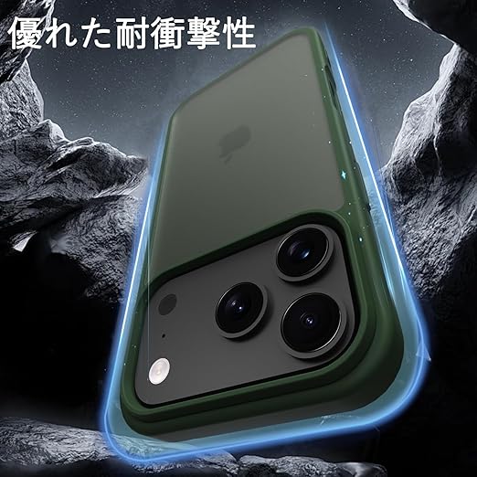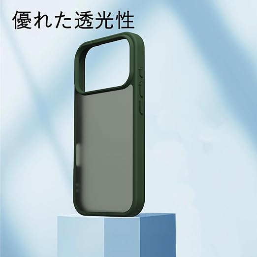 iPhone 17 Pro Max ケース 耐衝撃 半透明 軽量 薄型 人気 PC 傷防止 滑り止め 指紋防止 米軍MIL規格 ワイヤレス充電対応 スマホカバー EUMADOVE (ダークグリーン, iPhone 17 Pro Max) a