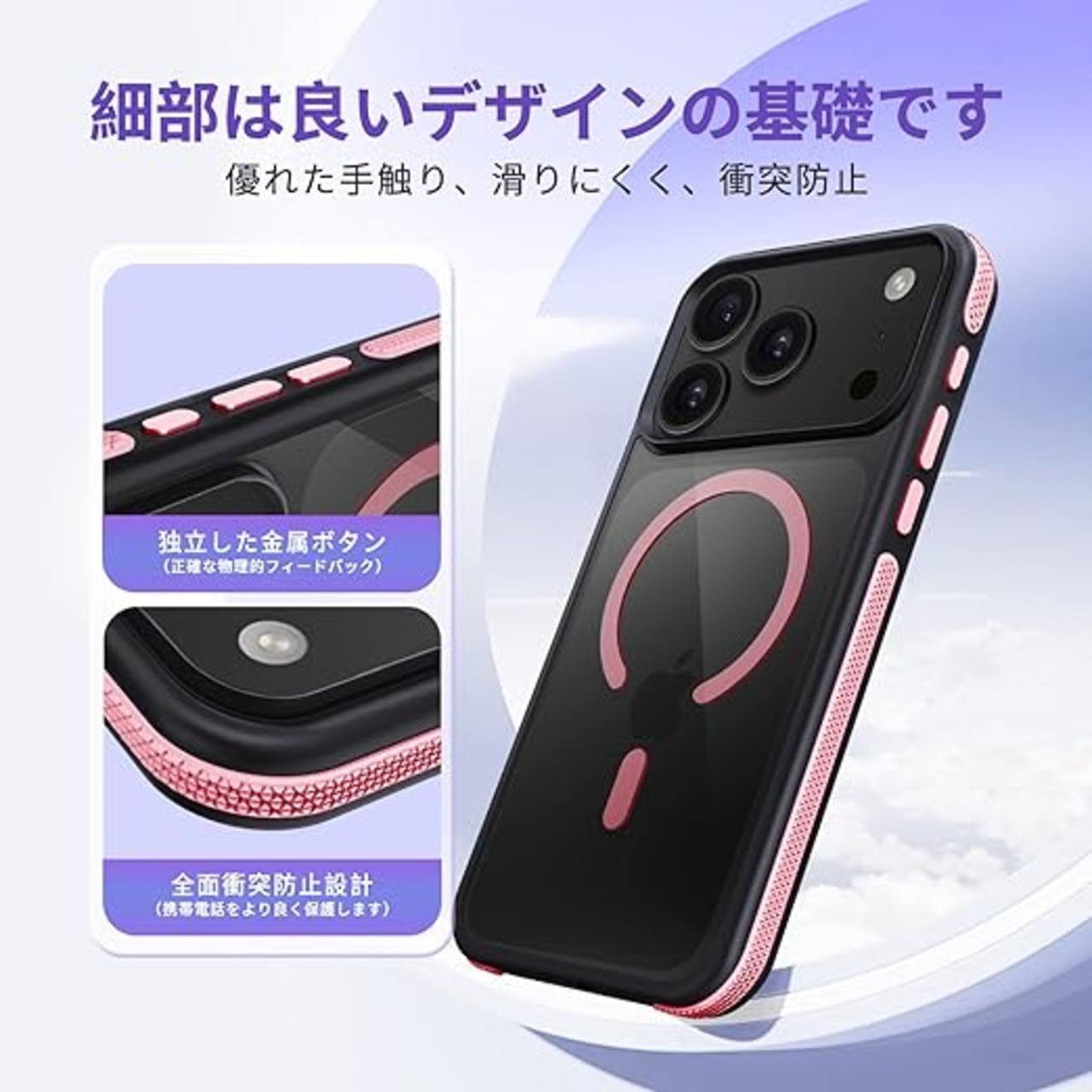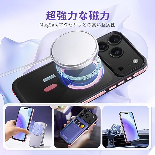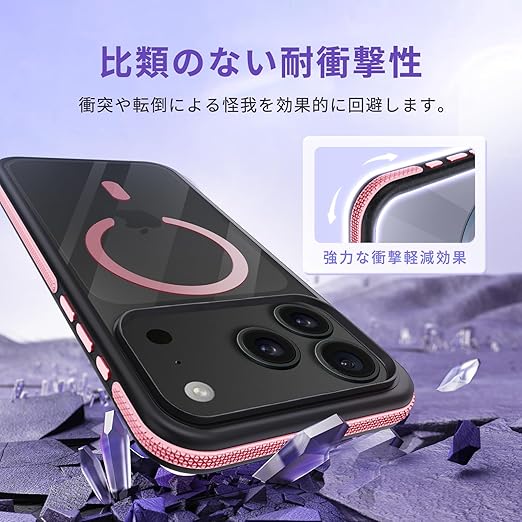 fagazzfu 対応 iPhone 17 Pro Max ケース MagSafe対応 耐衝撃 半透明 【滑り止めと衝突防止のツーインワンエッジ】 対応 iPhone 17 Pro Max スマホケース 衝撃吸収 滑り止め 傷防止の いpほね17ProMax カバー ワイヤレス充電対応 米軍MIL規格 衝突防止ストリップフレーム レンズ保護 薄くて 人気 (ピンク) a