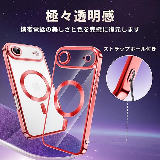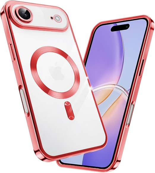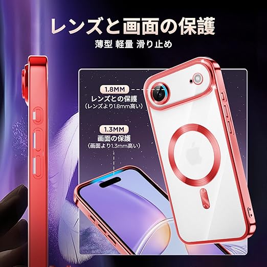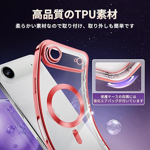 fagazzfu 対応 iPhone 17 Air ケース クリア MagSafe対応 対応 iPhone 17 air スマホケース 耐衝撃 傷防止の メッキ加工 いpほね17 air カバー レンズ保護 TPU ソフト 薄くて 指紋防止 滑り止め 黄変防止 人気 (レッド) a