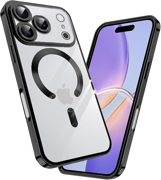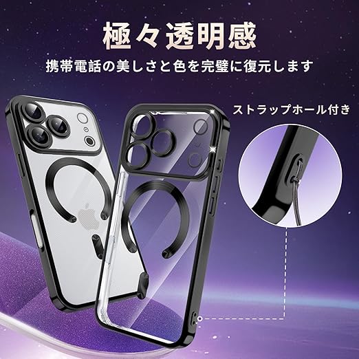 fagazzfu 対応 iPhone 17 Pro ケース クリア MagSafe対応 対応 iPhone 17 pro スマホケース 耐衝撃 傷防止の メッキ加工 いpほね17 pro カバー レンズ保護 TPU ソフト 薄くて 指紋防止 滑り止め 黄変防止 人気 (ブラック) a