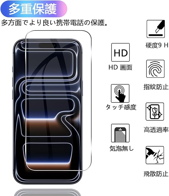 【高透過率】 高品質の日本製旭硝子素材を採用することで透過性がに達しています。市販のガラスフィルムより透明度が高くて、液晶画面の本来の美しさを損なわないません。高
