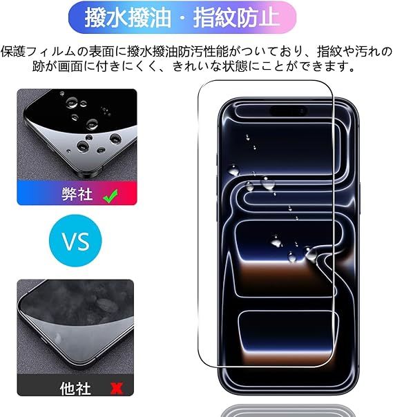 【対応機種 】 対応 iPhone 17 Pro ガラスフィルム + カメラフィルム ,専用液晶画面保護ガラスフィルム。スクリーンプロテクターに付属のマウントフレームを使用することで簡単に取り付けができ、フィルムのシリコン自己吸着層により、スチールフィルムを携帯電話に合わせて軽く置くだけで、気泡が入らないように簡単に取り付けられます。
