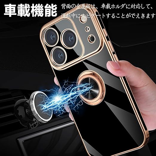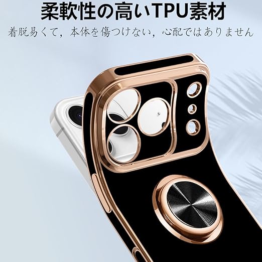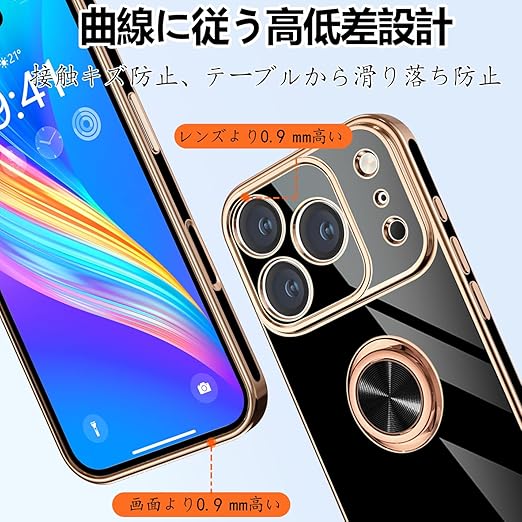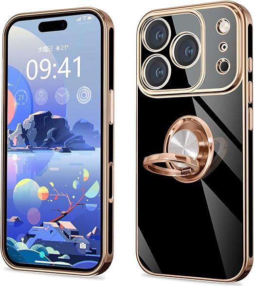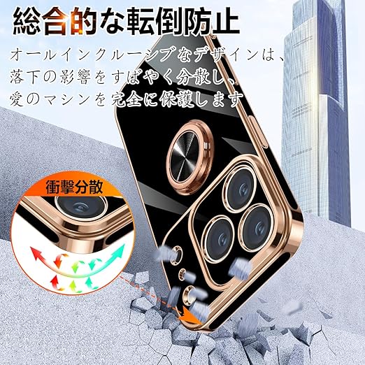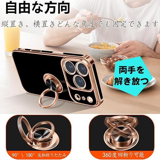 fusinong 用の iPhone 17 Pro Max ケース リング付き リング 耐衝撃 全面保護 ソフト 薄型 スタンド機能付き 360回転 車載ホルダー対応(ブラック) a