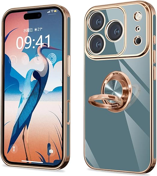 fusinong 用の iPhone 17 Pro Max ケース リング付き カバー リング 耐衝撃 全面保護 ソフト 薄型 スタンド機能付き 360回転 車載ホルダー対応 (グレー) a
