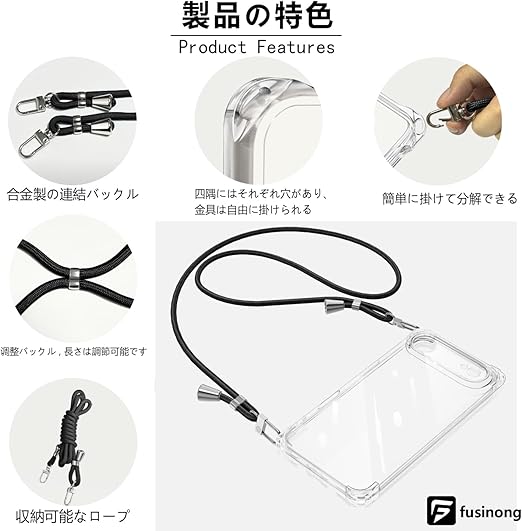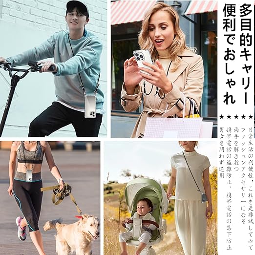 【ショルダーストラップ 付き】電話ケースの特別な四隅のデザインにより、ストラップを垂直または水平にリンクできます。柔らかいナイロンストラップで首を快適に保ち、ストレッチの長さを調整でき、ストラップを取り外して、スマホケースを単独で使用できます。