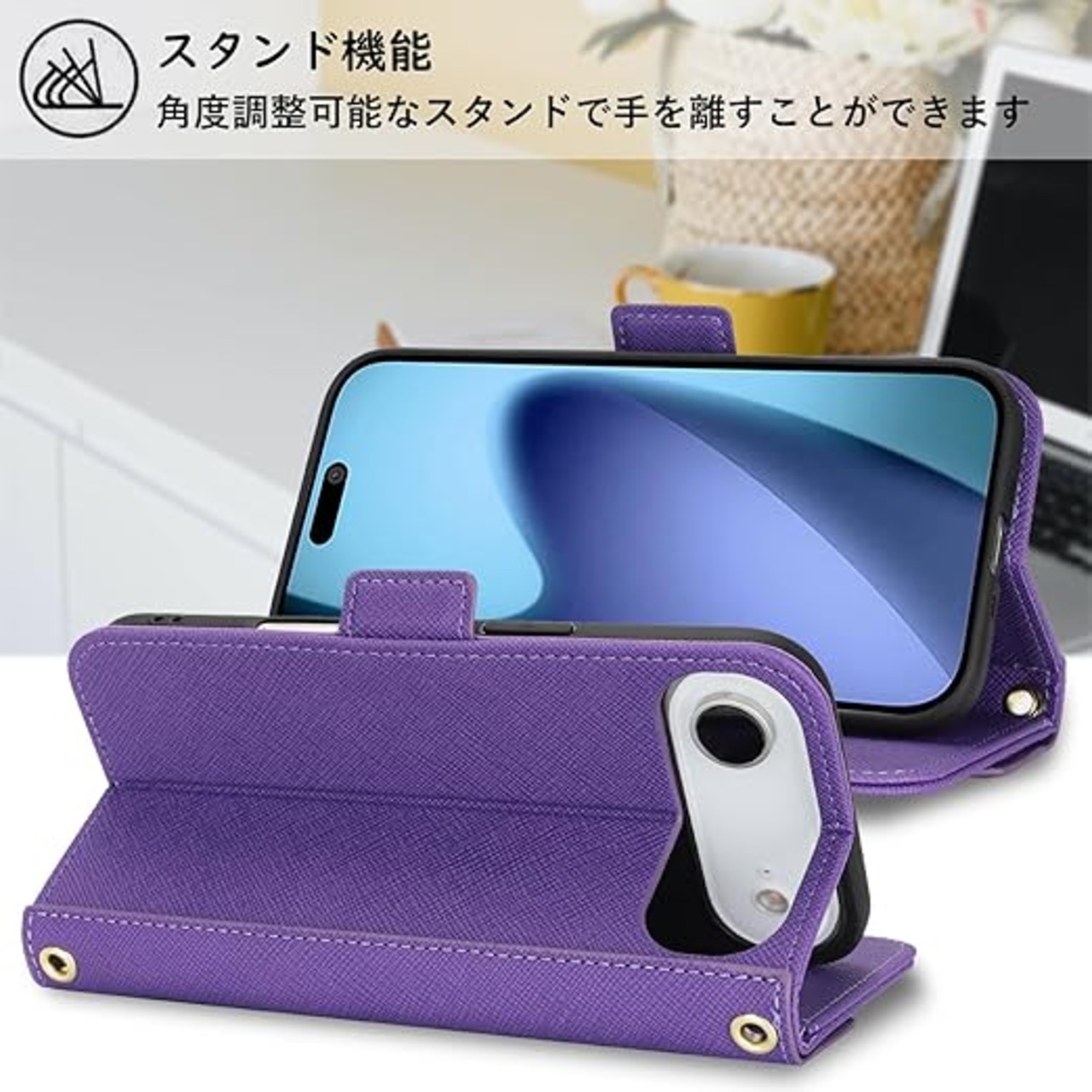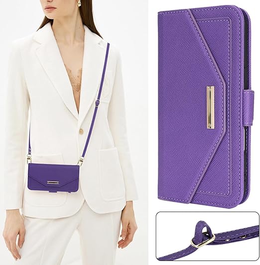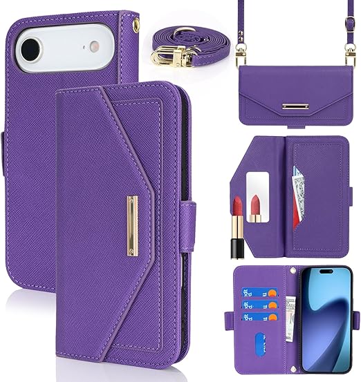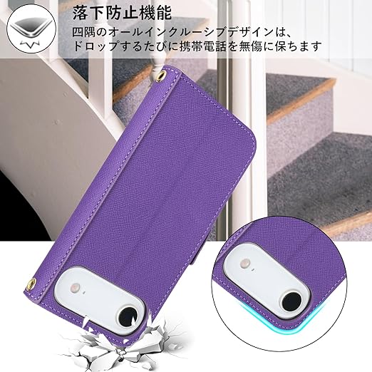 【Hamany】 対応 iphone 17 air ケース 手帳型 ショルダー 鏡 いphone17 air ケース ストラップ付き ミラー カード収納 財布 スマホケース アイフォン17air クロスボディケース 肩がけ 首掛け 斜め掛け ショルダーバッグ 携帯カバー -紫 a