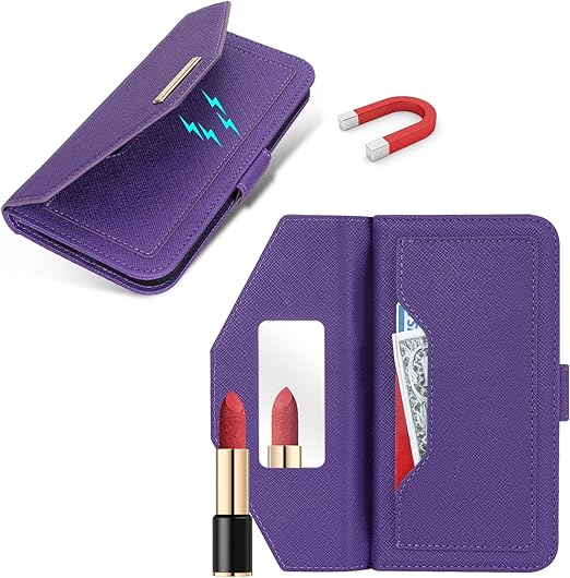 【高級皮革】高品質のPUと柔軟なTPUシェルを組み合わせて、スタイリッシュな外観、快適で滑らかなライン、優れた放熱性と耐衝撃性、優れた耐傷性と防塵性能を備えています. 変形しにくく、取り外しも簡単なので、スマホ自体を傷つける心配もありません。※注意:化粧鏡の素