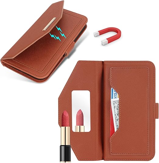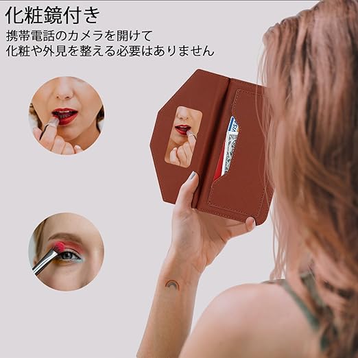 【高級皮革】高品質のPUと柔軟なTPUシェルを組み合わせて、スタイリッシュな外観、快適で滑らかなライン、優れた放熱性と耐衝撃性、優れた耐傷性と防塵性能を備えています. 変形しにくく、取り外しも簡単なので、スマホ自体を傷つける心配もありません。※注意:化粧鏡の素