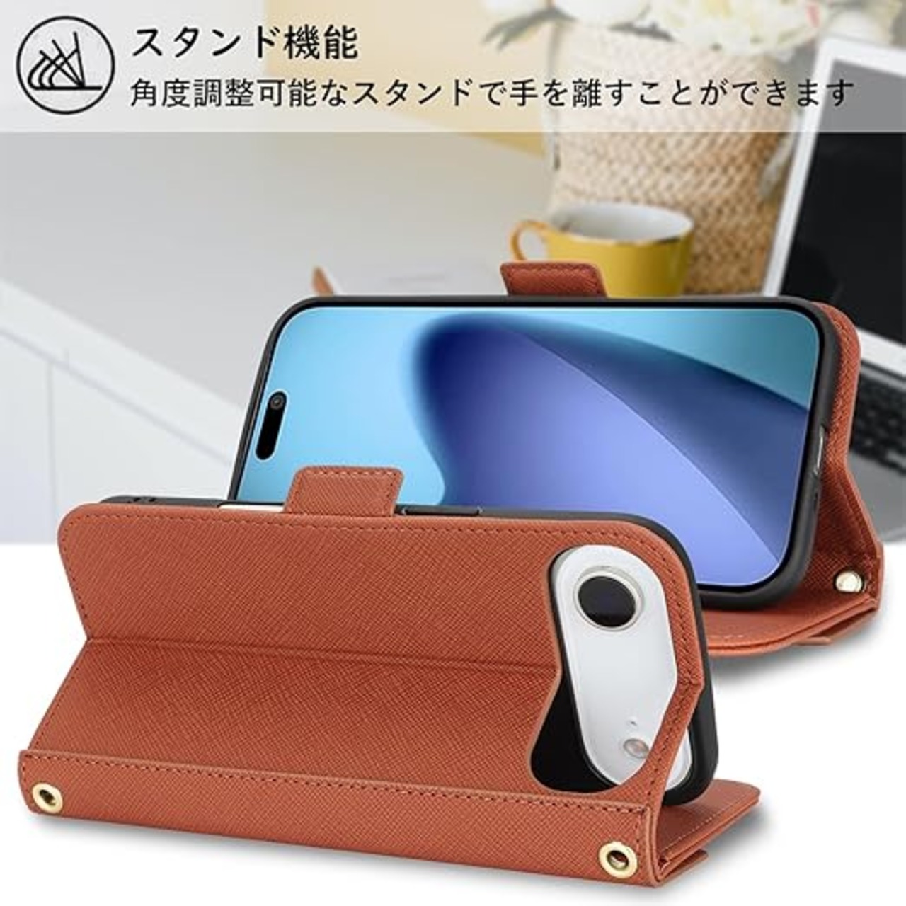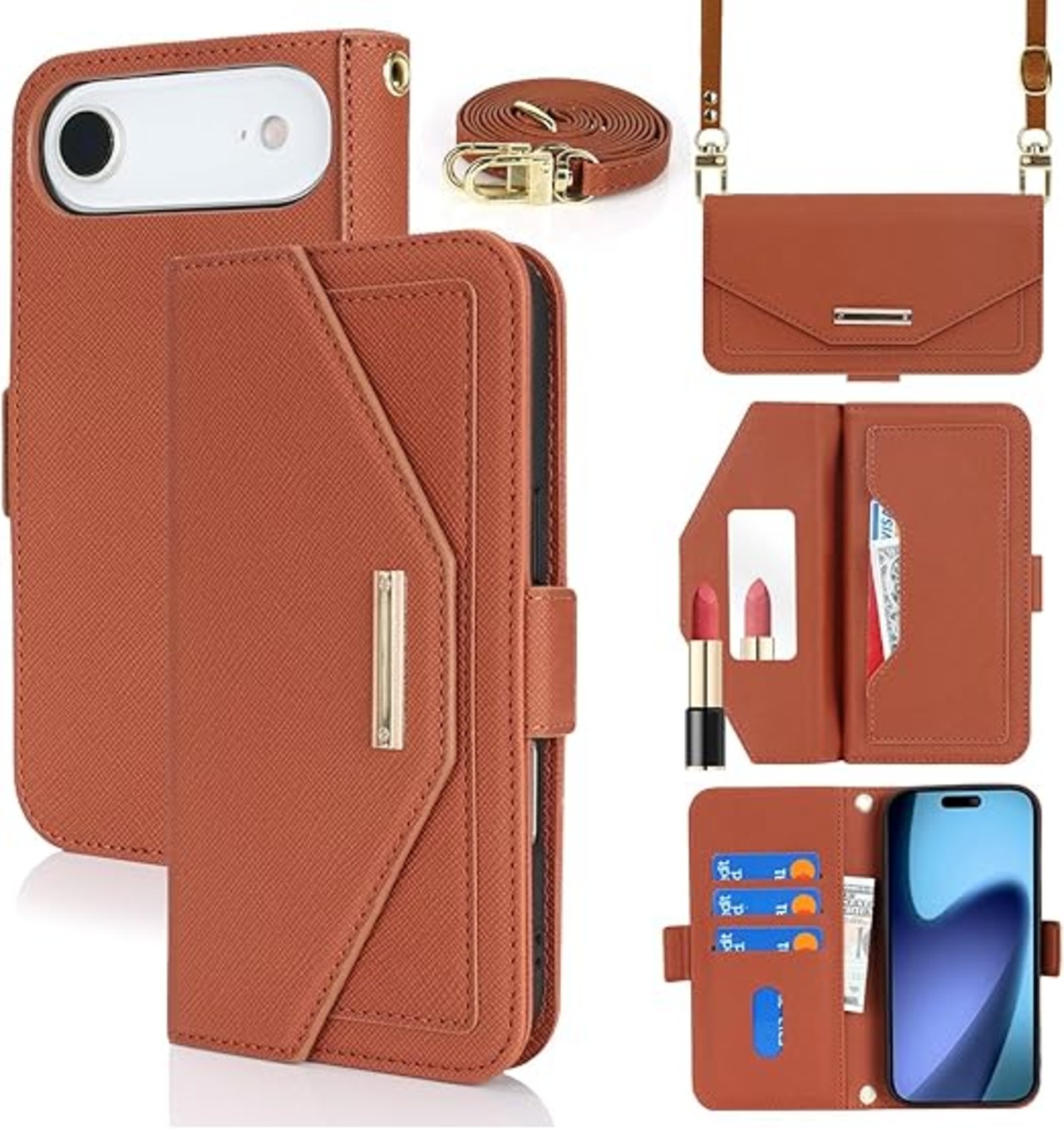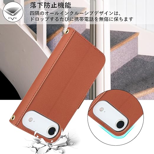 【Hamany】 対応 iphone 17 air ケース 手帳型 ショルダー 鏡 いphone17 air ケース ストラップ付き ミラー カード収納 財布 スマホケース アイフォン17air クロスボディケース 肩がけ 首掛け 斜め掛け ショルダーバッグ 携帯カバー -茶褐 a