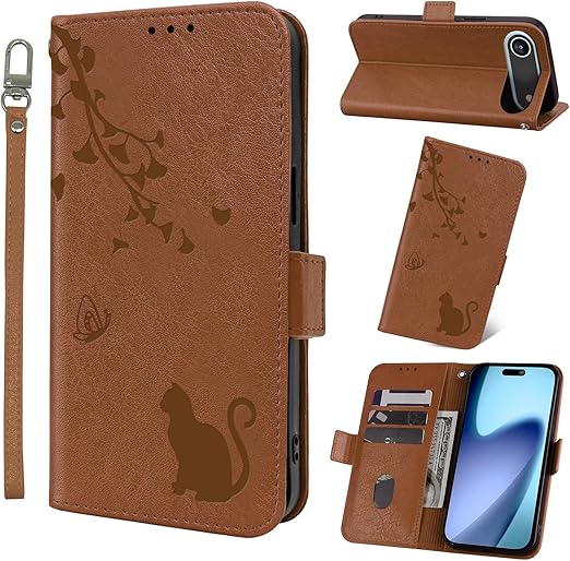 Jajaful 対応 iPhone 17 air ケース 手帳型 アイフォン17 air ケース 手帳型 財布型 いphone17air 携帯ケース おしゃれ アイホン17air スマホケース phone17air 手帳型ケース 耐衝撃 あいほん17air 携帯カバー スタンド機能 カード収納 PUレザー 軽量 マグネット式 可愛い 猫 ブラウン a