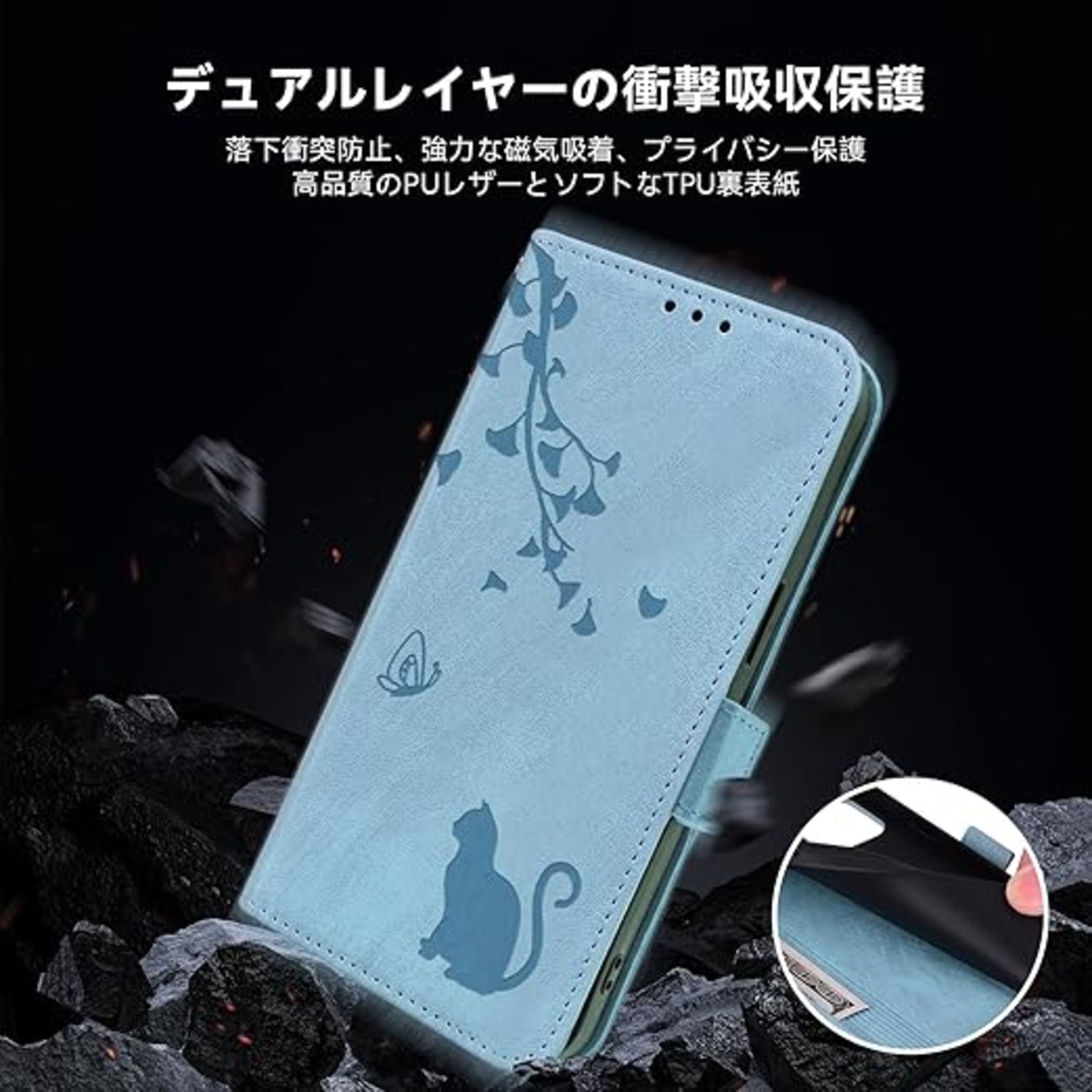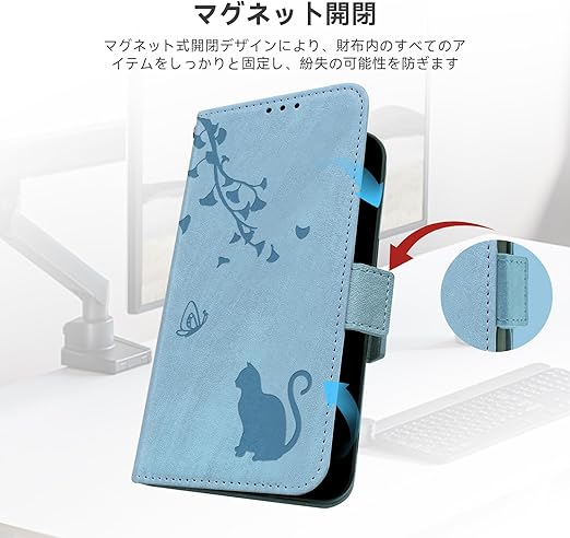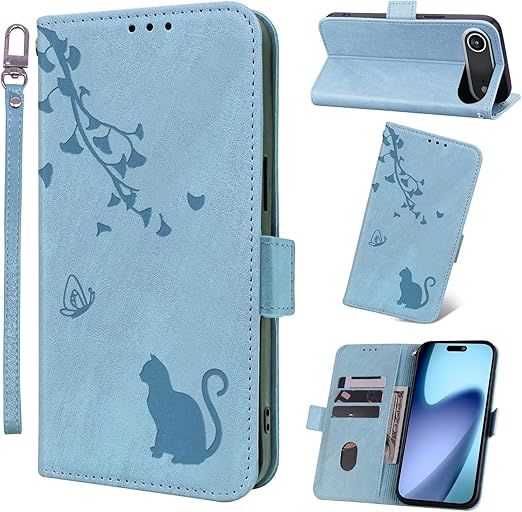 Jajaful 対応 iPhone 17 air ケース 手帳型 アイフォン17 air ケース 手帳型 財布型 いphone17air 携帯ケース おしゃれ アイホン17air スマホケース phone17air 手帳型ケース 耐衝撃 あいほん17air 携帯カバー スタンド機能 カード収納 PUレザー 軽量 マグネット式 可愛い 猫 スカイブルー a