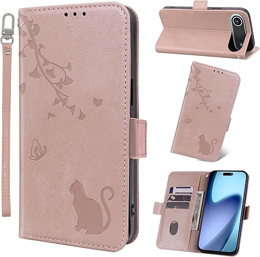 Jajaful 対応 iPhone 17 air ケース 手帳型 アイフォン17 air ケース 手帳型 財布型 いphone17air 携帯ケース おしゃれ アイホン17air スマホケース phone17air 手帳型ケース 耐衝撃 あいほん17air 携帯カバー スタンド機能 カード収納 PUレザー 軽量 マグネット式 可愛い 猫 ローズピンク a
