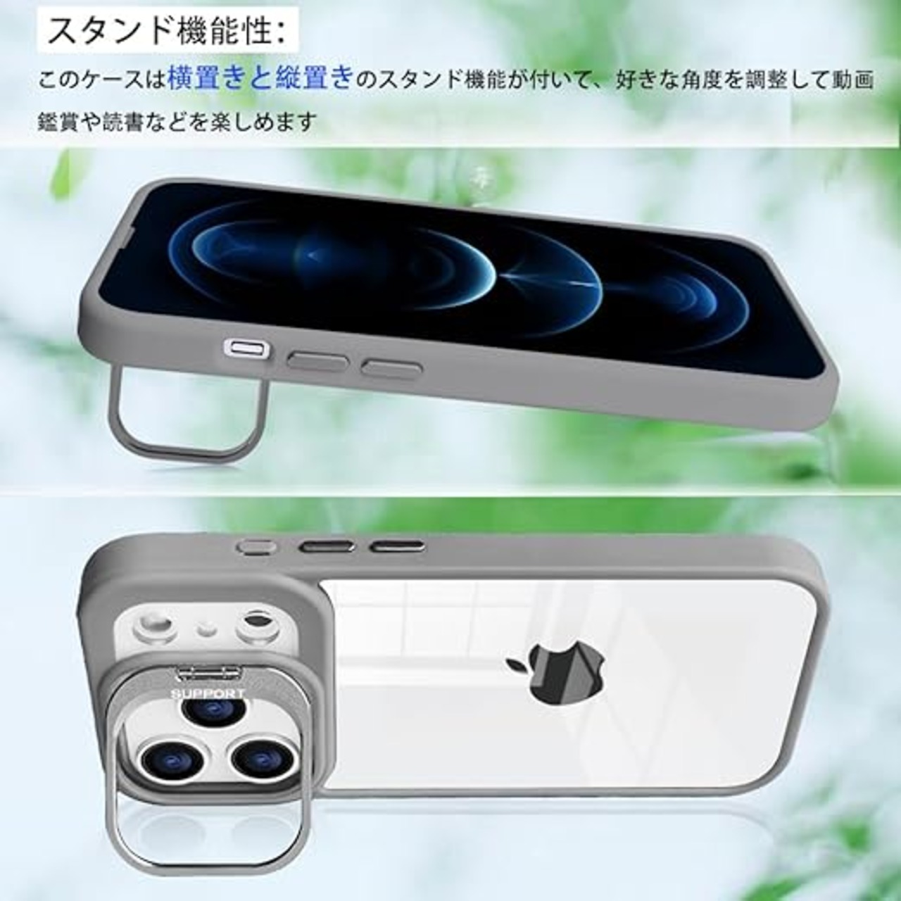 【スタンド調整可能】ケースのカメラ部分にはアルミニウム合金製スタンドが付いており、立てかけることが出来ます。ビデオ通話したり、動画を視聴したりする際に便利です。90度の角度まで調節可能で、お好きな角度で視聴できます。生活がより便利なものになりますのでおすすめです。