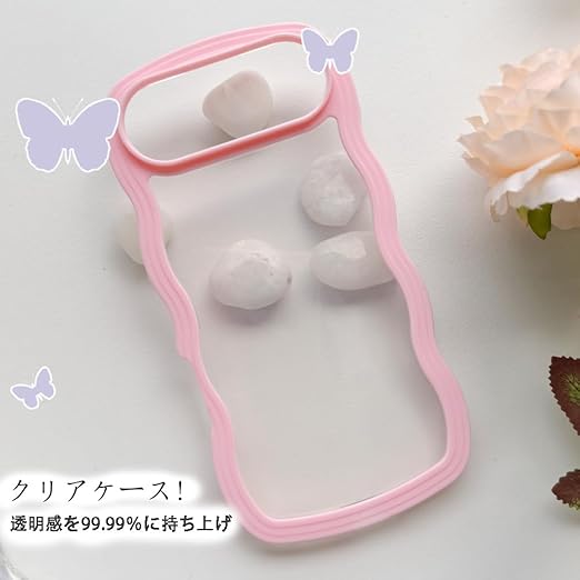 【透明感 フィット感】背面は透明度99.99%のTPUの素材で、携帯電話本来の美しさと高級感をそのままに映り出し、いつものスマホに上品さをプラス。サイド周りのウェーブ部分はプラスチック素材で取り外し可能です。