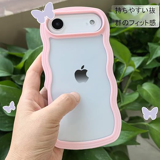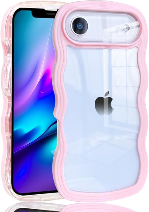 JOOBOY スマホケース 対応 iPhone 17 Air ケース クリア 透明 TPU 韓国 可愛い ウェーブ ソフト 滑り止め 薄型 軽量 耐衝撃 おしゃれ スマホケース ストラップホール付き 対応 アイフォン17 air カバー (ピンク,17 Air) a